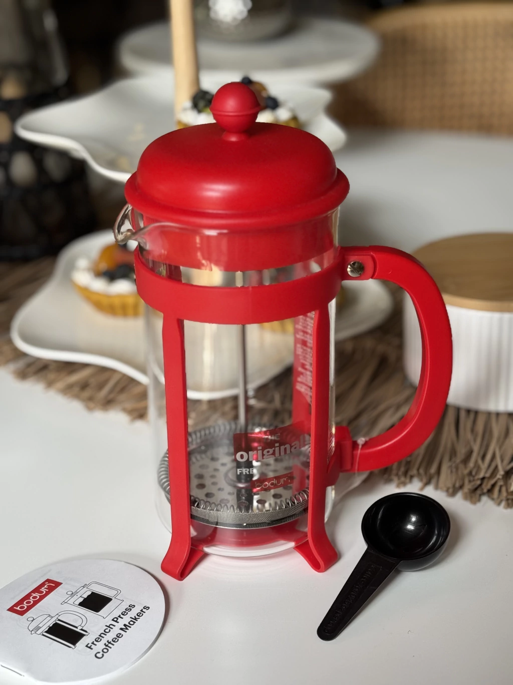 Descubre la Cafetera Francesa Roja de Bodum, un producto de gran prestigio en el mercado de cafeteras. Esta cafetera, diseñada para preparar hasta 8 pocillos, resalta por su capacidad de conservar los aceites naturales del café, garantizando una experiencia de sabor espesa y deliciosa.