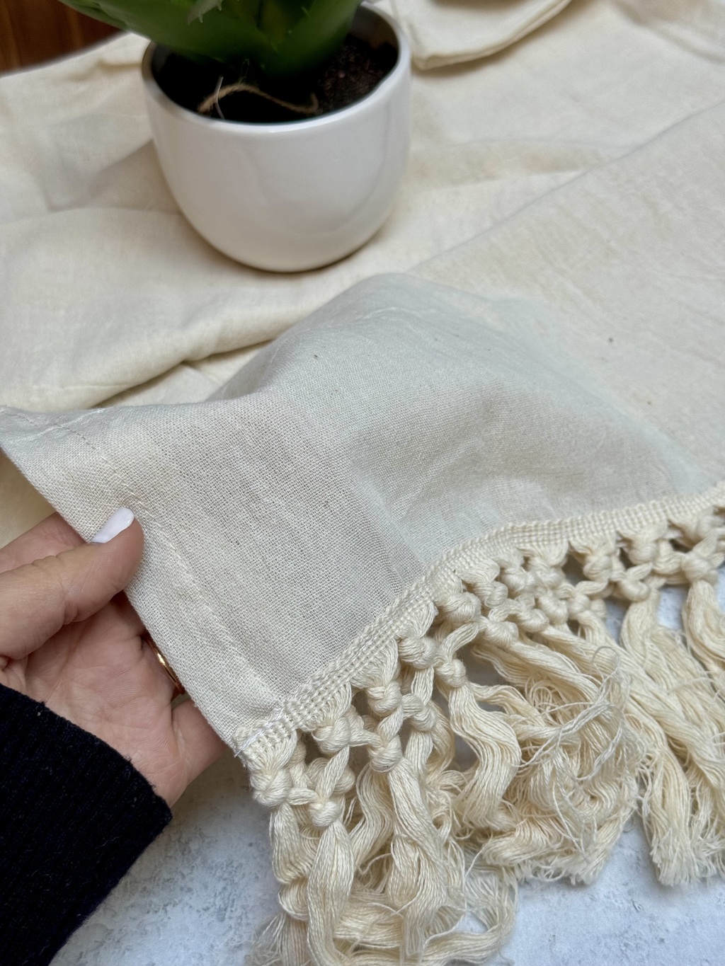 Su textura liviana y los delicados flecos Acacia aportan un acabado artesanal que realza cualquier decoración, desde eventos formales hasta reuniones cotidianas.