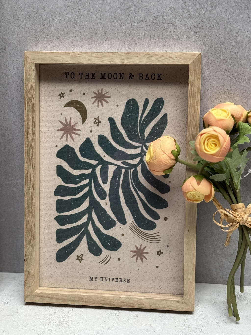 Descubre el Cuadro Moon con marco de madera, una pieza artística que aportará elegancia y estilo a tu hogar. Con unas medidas de 20 x 30 cm, este cuadro incluye un vidrio protector y una lámina ilustrativa que realza cualquier ambiente.