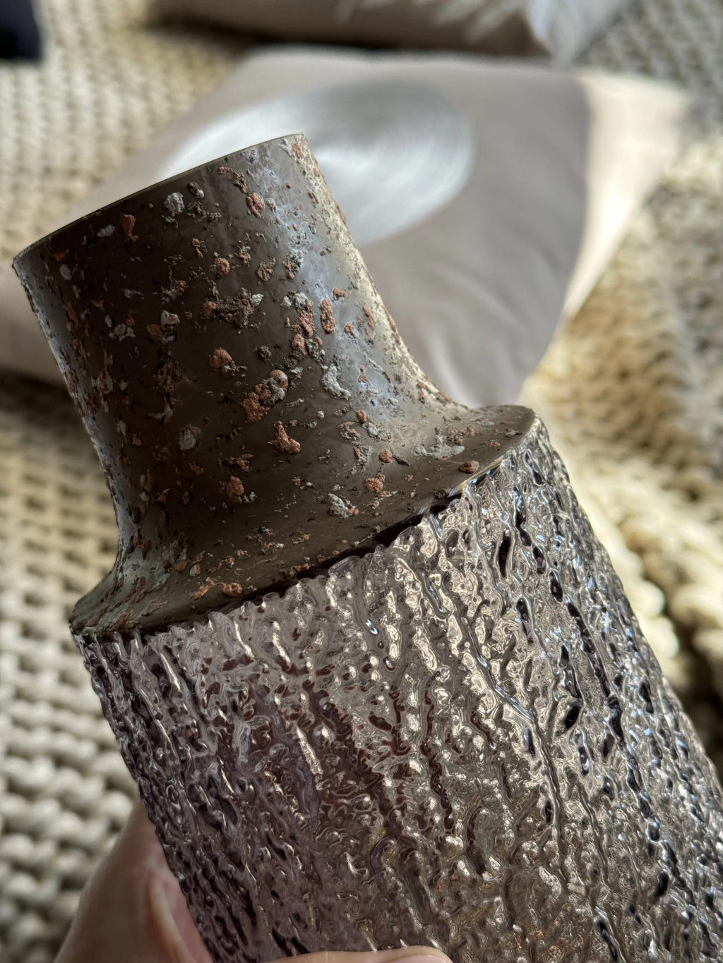 Medidas: Ø 12 x H 26 cm. Boca Ø 6,5 cm
