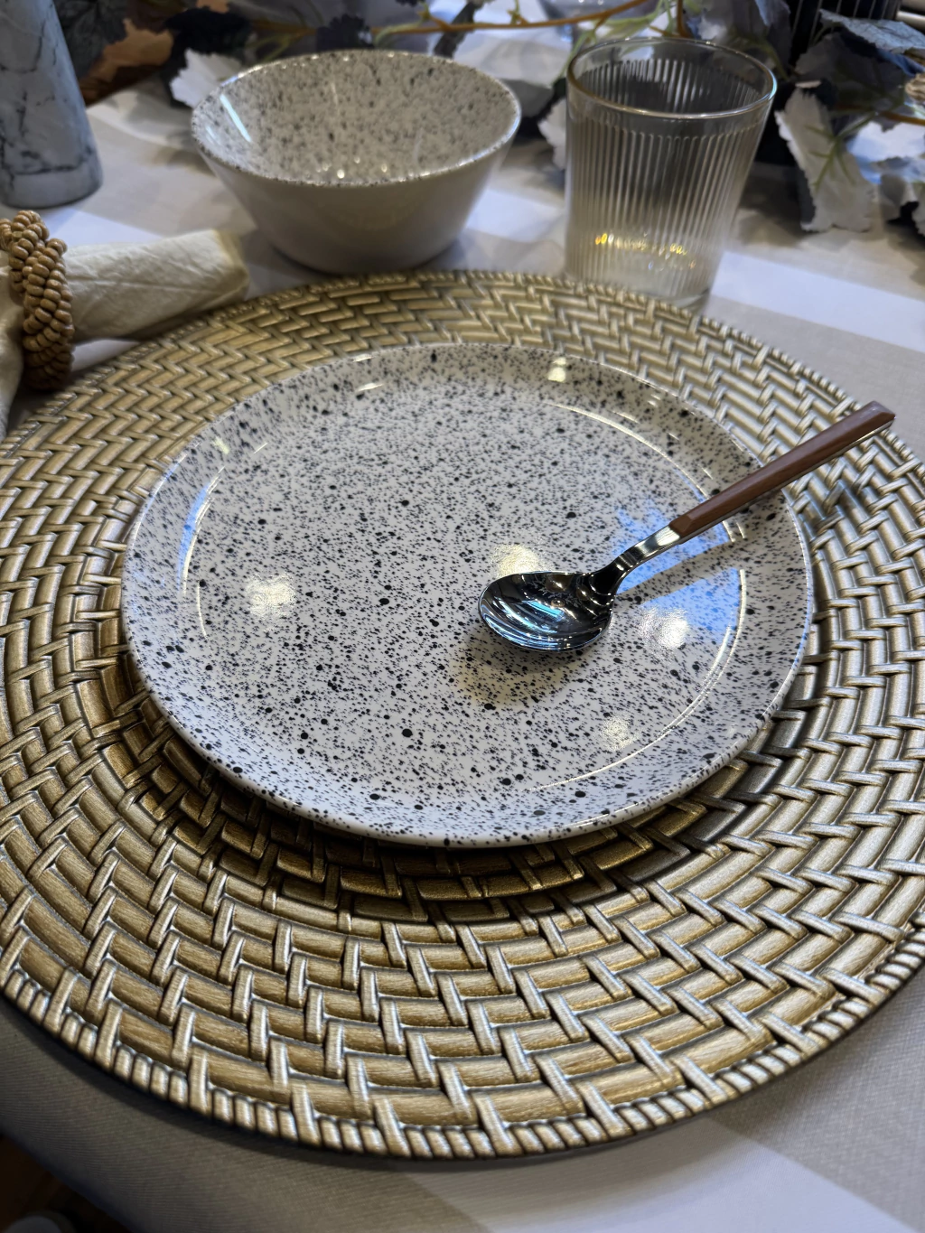 Individual Zambia / Posa Plato simil ratán de 33 cm de diámetro, ideal para cualquier ocasión, desde cenas formales hasta reuniones informales.