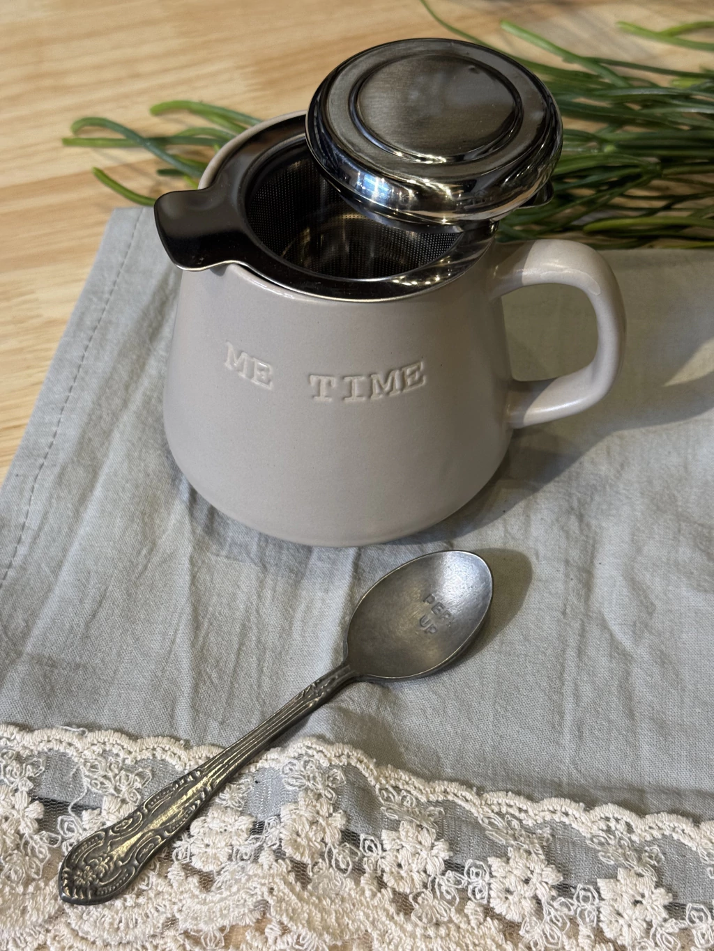 Infusor de hierbas en acero inoxidable, ideal para preparar tus infusiones favoritas de manera práctica y elegante.