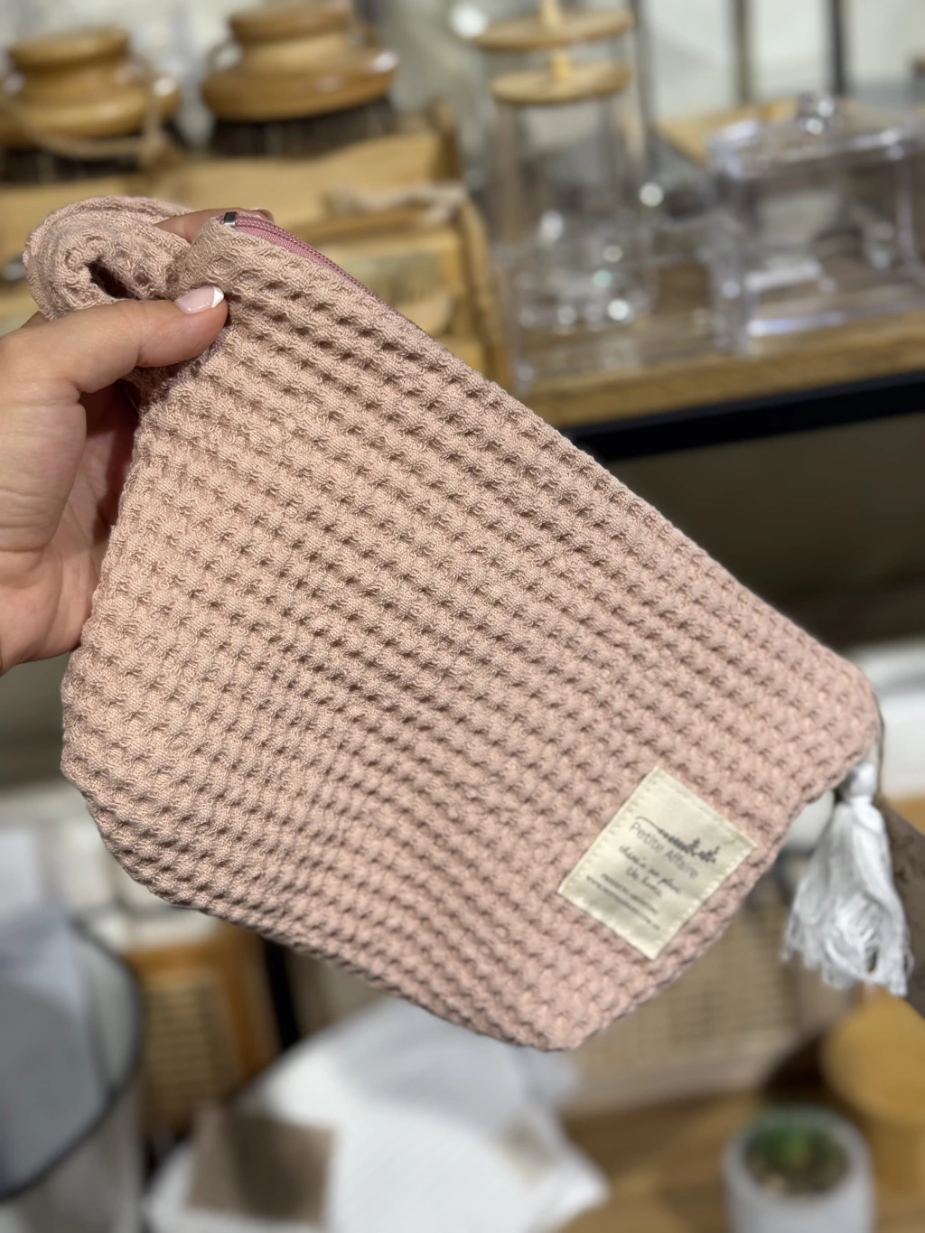 Descubre nuestro Neceser Wafle Rose, un accesorio indispensable para mantener tus cosméticos organizados. Confeccionado en wafle prelavado, este neceser es perfecto para guardar cremas y otros productos de belleza.