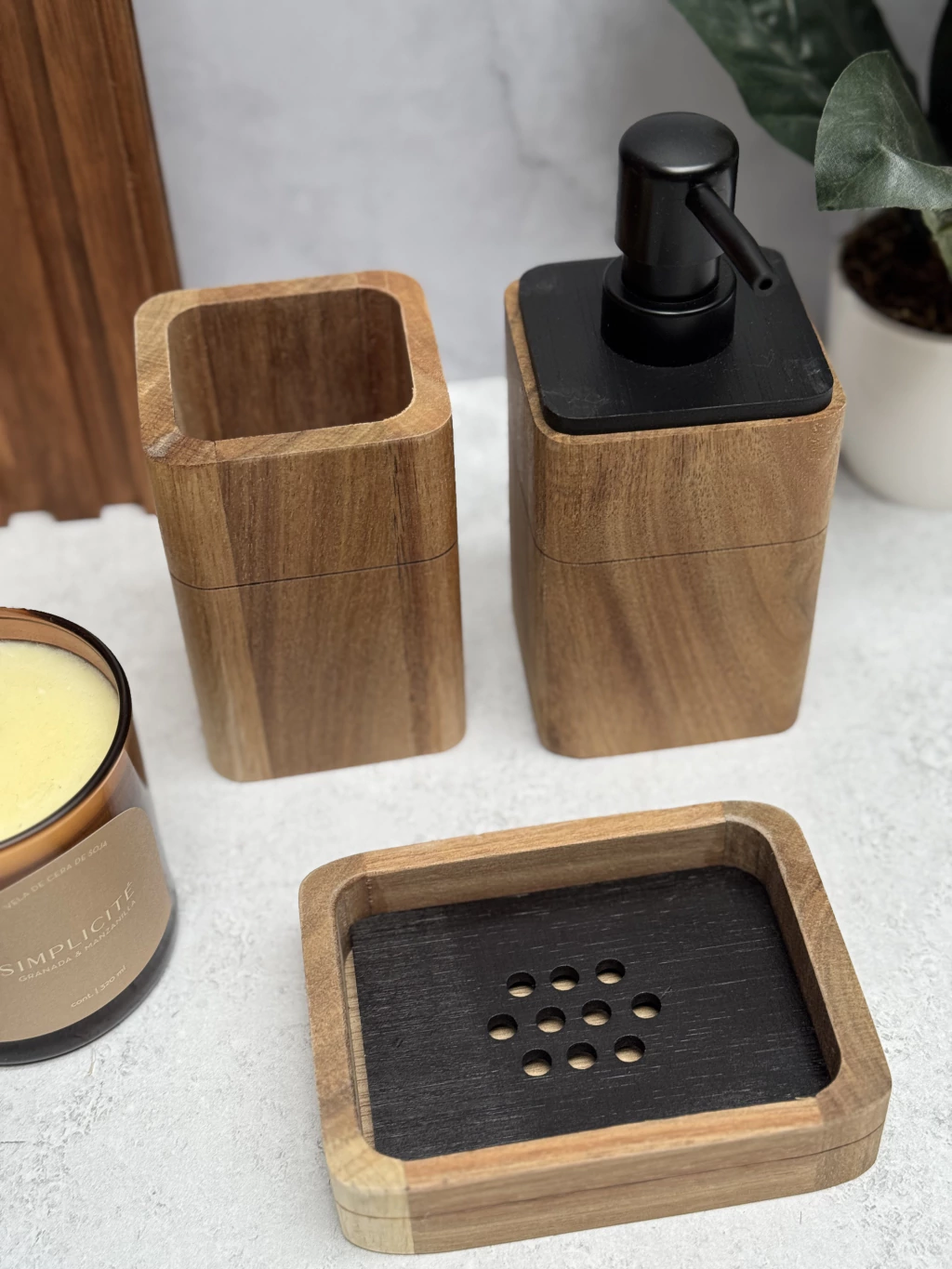 Organiza tus cepillos de una manera elegante con nuestro Portacepillo Acacia. Este hermoso accesorio de madera está diseñado para añadir un toque natural a tu espacio.