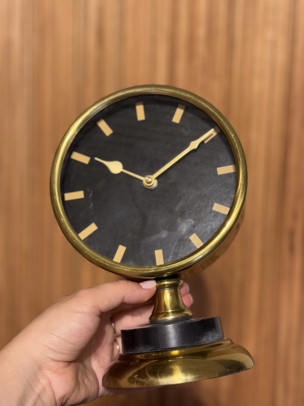 Reloj de mesa hecho de aluminio y mármol