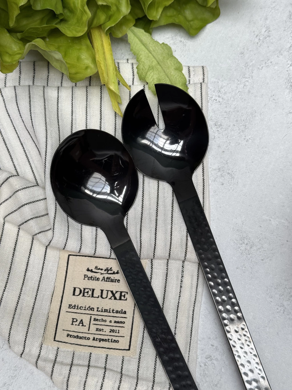 Descubre el Set x 2 Cubiertos de Ensalada Black Kiran, la combinación perfecta de elegancia y funcionalidad. Con un diseño moderno y estilo canchero, estos cubiertos de acero inoxidable de 27 cm son ideales para complementar cualquier set de bowls.