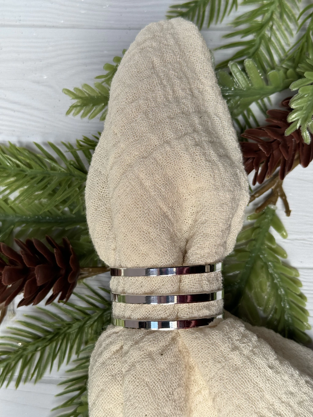 Transforma tus ocasiones especiales con este elegante Set x 6 servilleteros de metal en color plateado. Cada servilletero tiene una medida aproximada de 4 x 3 cm, ideal para aportar un toque de sofisticación a tu mesa.