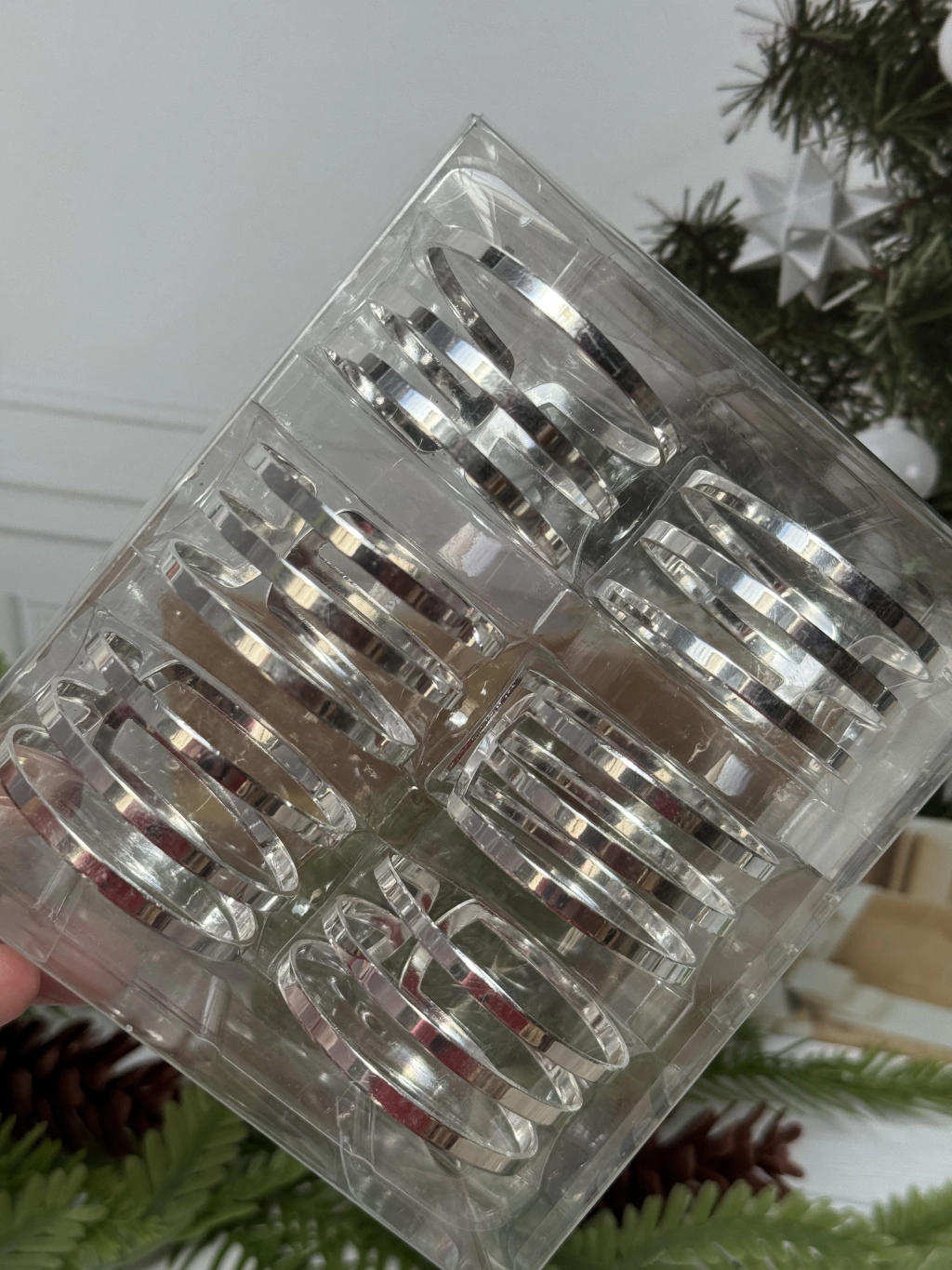 Set x 6 servilleteros de metal líneas plateado